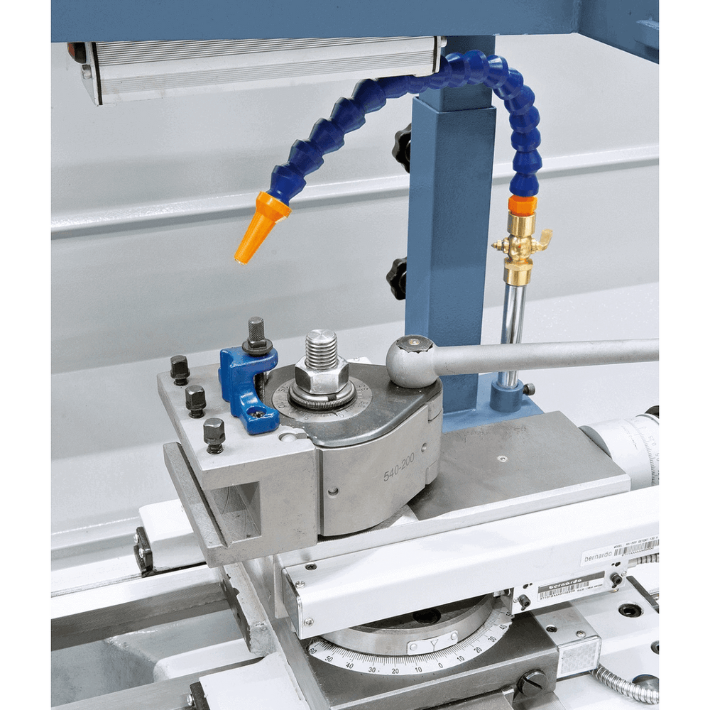 Il tornio Bernardo Master 400 Top è progettato per lavorazioni di precisione e alta affidabilità, ideale per officine meccaniche e laboratori professionali. Con un diametro tornibile sul banco di 400 mm e una distanza tra le punte di 1000 mm, offre un ottimo compromesso tra capacità e compattezza. Equipaggiato con motore da 1,5 kW (400 V) e gamma di velocità a 8 step da 70 a 2000 giri/min, garantisce versatilità e controllo. Il visualizzatore digitale a 3 assi ES-12 V con display LCD consente un controllo dimensionale rapido e preciso. La dotazione completa comprende mandrino autocentrante Ø 200 mm, piastra frontale, lunette, torretta utensili, pedale con freno CE e dispositivo refrigerante. Un tornio robusto (640 kg), affidabile e completo di accessori, perfetto per torniture precise e lavori professionali continuativi.