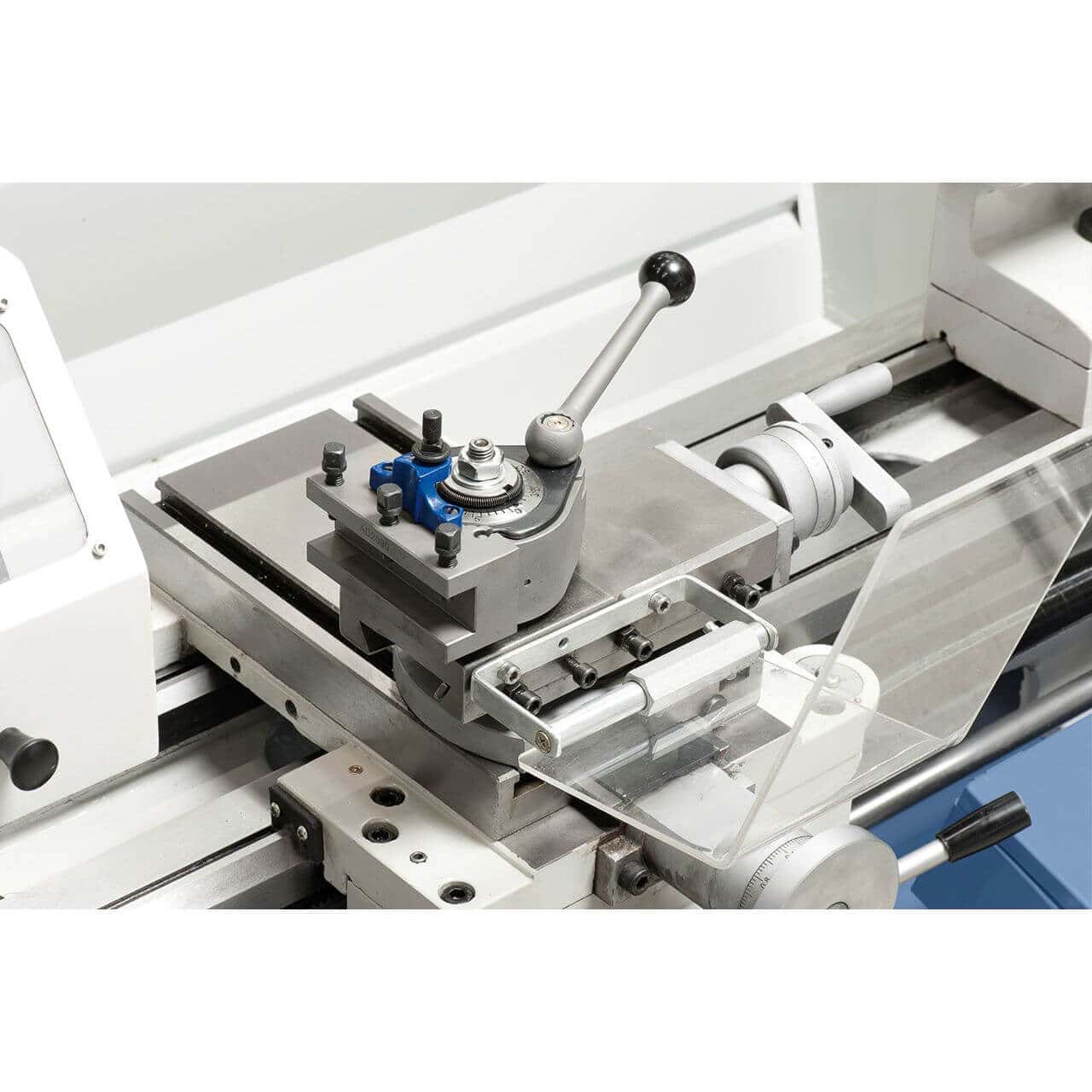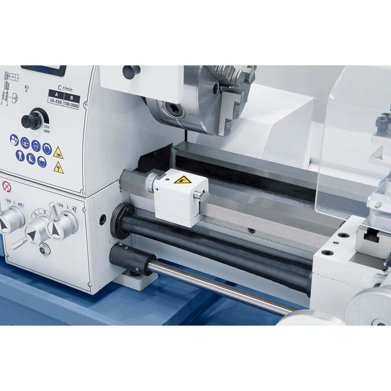 Il tornio Bernardo Profi 700 PRO Vario / 230 V è una macchina professionale compatta che offre precisione e potenza elevate. Dotato di un mandrino in acciaio a 3 griffe adatto fino a 3000 giri/min e di un bancale temprato a induzione, assicura rigidità e lunga durata. L’inverter Delta integrato garantisce coppia elevata ai bassi regimi e velocità costante anche sotto carico, con regolazione continua (30–3000 giri/min) leggibile sul display digitale. Il mandrino, supportato da cuscinetti a rulli conici P5, garantisce concentricità ≤0,015 mm, mentre la contropunta MT3 con scala 0,02 mm permette regolazioni fini. Grazie alla torretta portautensili rapida inclusa e agli accessori di serie, è la scelta ideale per officine, hobbisti evoluti e laboratori di formazione.