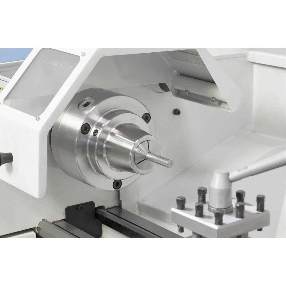 Il tornio Bernardo Profi 700 Top / 230 V è la scelta ideale per chi cerca una macchina compatta ma altamente professionale. Dotato di un passaggio barra da 38 mm e di un bancale prismato temprato a induzione, offre massima stabilità e precisione nelle lavorazioni di acciaio, metalli non ferrosi e plastica. Il motore trifase con inverter garantisce elevata coppia anche a bassi regimi, con regolazione continua della velocità (70–2000 giri/min) leggibile sul display digitale. Il mandrino, montato su cuscinetti conici di precisione, assicura concentricità inferiore a 0,015 mm. La contropunta MT3 con corsa da 85 mm, dotata di scala graduata 0,02 mm, consente regolazioni accurate. Completo di accessori professionali, rappresenta un tornio versatile e affidabile per officine e laboratori.