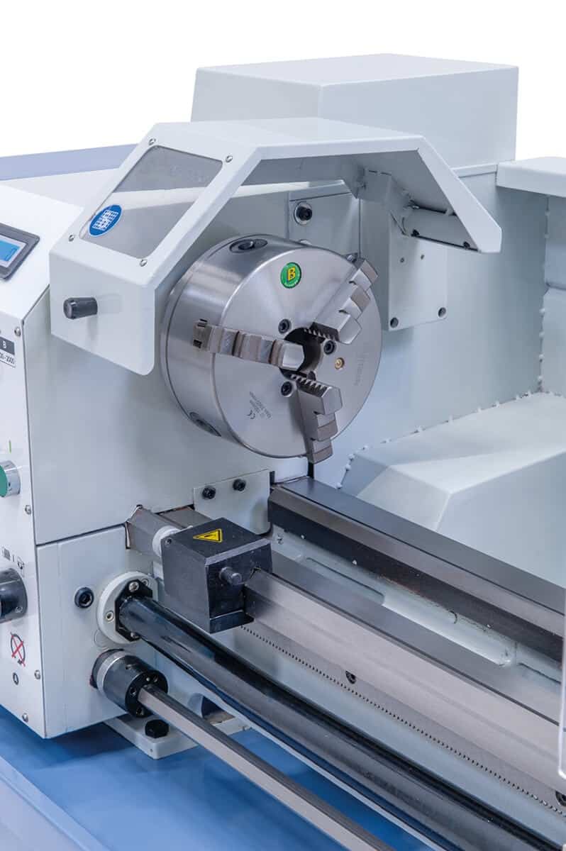 Il tornio Bernardo Profi 750 Vario / 230 V è una macchina compatta e potente, ideale per hobbisti avanzati, scuole e laboratori. Con una distanza tra le punte di 750 mm e un diametro tornibile sul banco di 280 mm, offre ampie possibilità di lavorazione di pezzi medio-piccoli. Il variatore elettronico di velocità, con due gamme (75–500 e 300–2000 giri/min), consente regolazioni precise e immediate. Il motore monofase da 1,5 kW (S1) – 2,2 kW (S6) assicura prestazioni costanti anche a pieno carico. Dotato di inverter di frequenza e lettura digitale della velocità, garantisce massima praticità e sicurezza. La dotazione standard comprende mandrino autocentrante Ø 160 mm, torretta a 4 posizioni, contropunte, ingranaggi di cambio, luce LED e protezioni CE. Un tornio compatto (220 kg) e versatile, perfetto per lavorazioni di precisione in spazi ridotti.