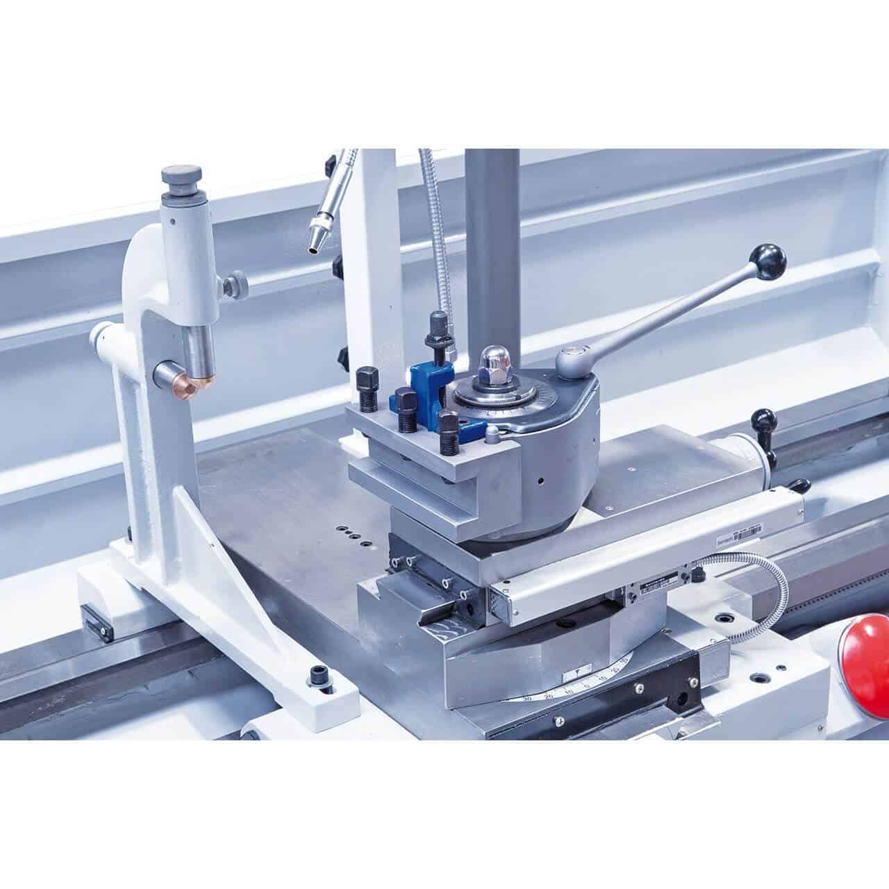 Il tornio Bernardo TITAN 560 x 3000 Pro Vario è una macchina di grande capacità progettata per lavorazioni professionali e pesanti. Con diametro tornibile sul banco di 560 mm e distanza tra le punte di 3000 mm, consente la lavorazione di pezzi di grandi dimensioni con massima stabilità. Il potente motore da 7,5 kW (10 HP) e il variatore elettronico di velocità con due gamme (25–1500 giri/min) garantiscono versatilità e prestazioni elevate. Il visualizzatore digitale a 3 assi ES-12 V con display LCD migliora la precisione e semplifica il controllo operativo. Completo di mandrino autocentrante Ø 315 mm, piastra frontale Ø 450 mm, lunette, torretta utensili a 40 posizioni, dispositivo refrigerante e freno a pedale CE, il TITAN 560 x 3000 è la soluzione ideale per officine meccaniche, carpenterie e aziende che richiedono un tornio robusto e affidabile per lavorazioni gravose.