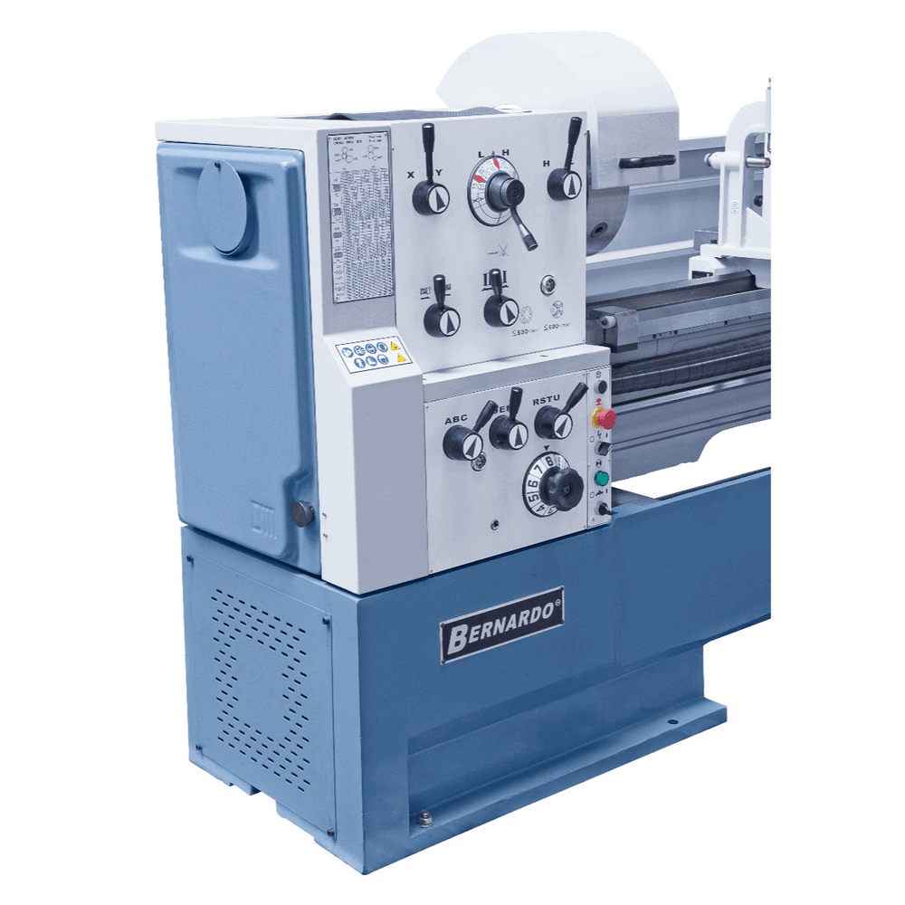 Il tornio Bernardo TITAN 560 x 2000 Pro è una macchina professionale per lavorazioni pesanti e di precisione su pezzi di grandi dimensioni. Con distanza tra le punte di 2000 mm e altezza punta di 280 mm, permette di tornire diametri fino a Ø 560 mm sul banco e Ø 785 mm sul gap, garantendo rigidità e precisione grazie al bancale da 350 mm. Il mandrino con foro da 105 mm e attacco D1-8 (DIN 55029) assicura robustezza anche sotto sforzi elevati. La gamma di velocità da 25 a 1500 giri/min (12 step) e le numerose possibilità di filettatura (41 metriche e 60 in pollici) lo rendono estremamente versatile. Con motore da 7,5 kW, freno magnetico, avanzamenti rapidi e visualizzatore digitale a 3 assi ES-12 V, il TITAN 560 x 2000 Pro è la soluzione ideale per officine meccaniche, carpenterie e produzioni industriali di medio-grandi dimensioni.