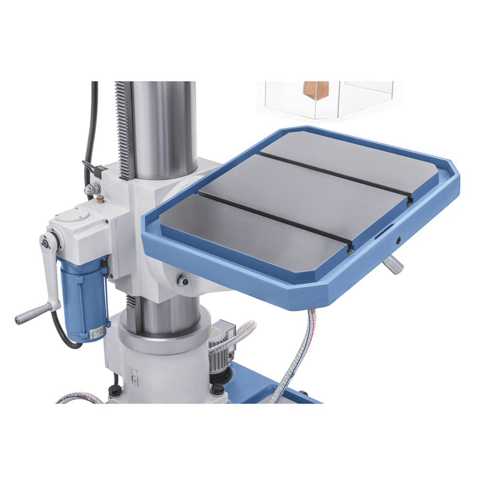 Il trapano a colonna Bernardo GB 55 è una macchina robusta e affidabile, progettata per lavorazioni professionali di foratura, alesatura e filettatura fino a M30. Grazie alla regolazione motorizzata in altezza della tavola e agli ampi display digitali per profondità di foratura e velocità, l’operatore dispone di un controllo ottimale su ogni fase di lavorazione.