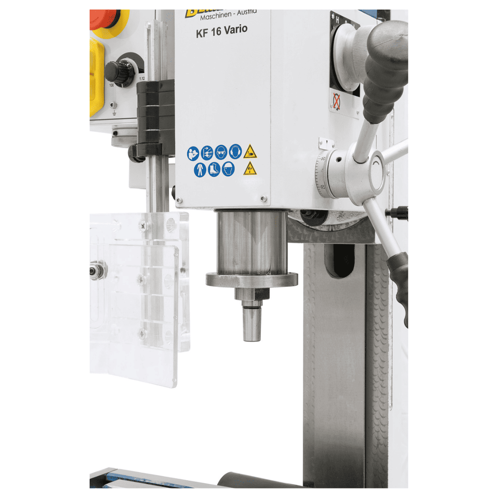 La Bernardo KF 16 Vario è una macchina combinata versatile che unisce le funzioni di trapano e fresatrice in un formato compatto. Progettata in ghisa grigia con guide a coda di rondine, garantisce rigidità, stabilità e ridotte vibrazioni, caratteristiche fondamentali per lavorazioni di precisione.