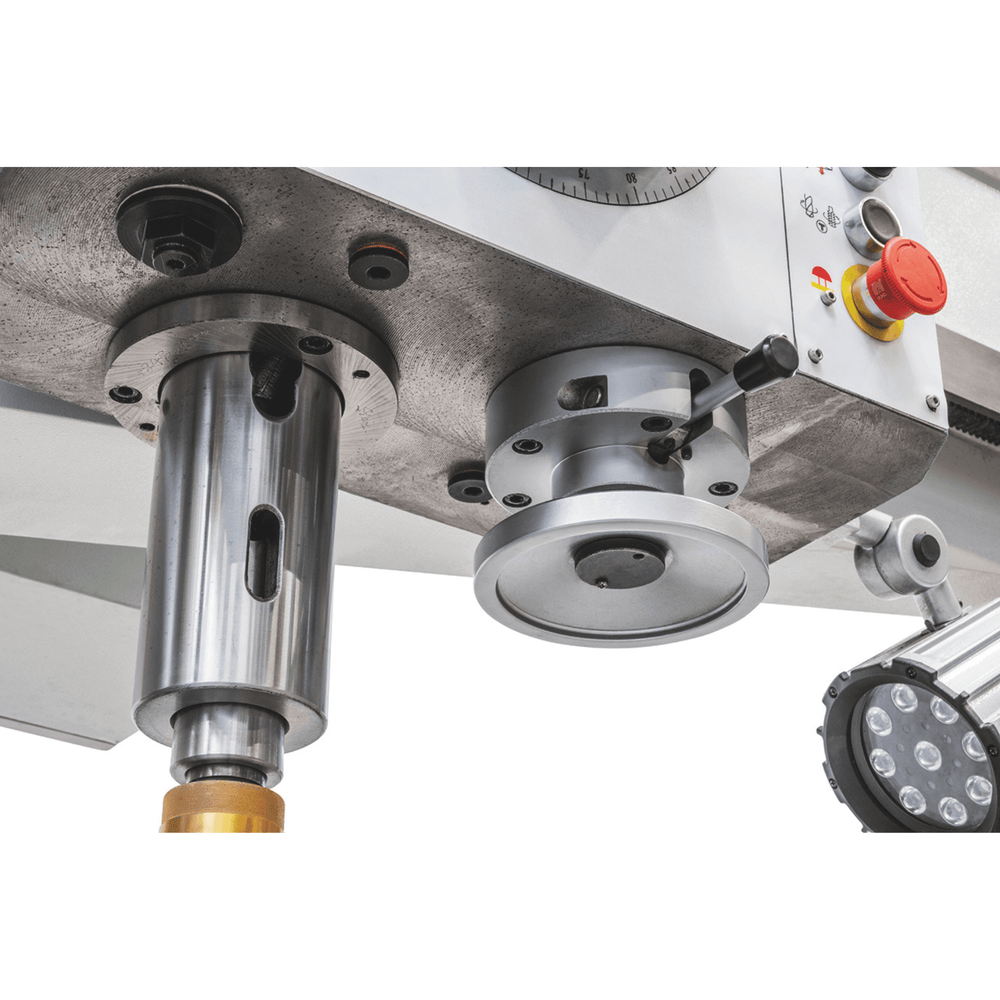 Le guide temprate e rettificate sul braccio radiale, la regolazione elettronica della profondità di foratura e il display digitale con lettura in mm o pollici garantiscono la massima precisione. Una macchina completa e robusta, perfetta per le esigenze di officine meccaniche e aziende di carpenteria pesante.