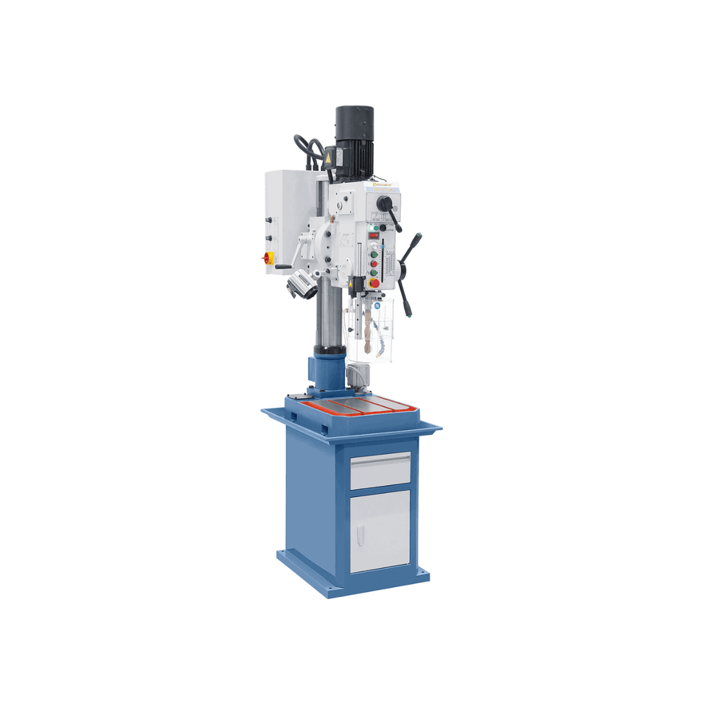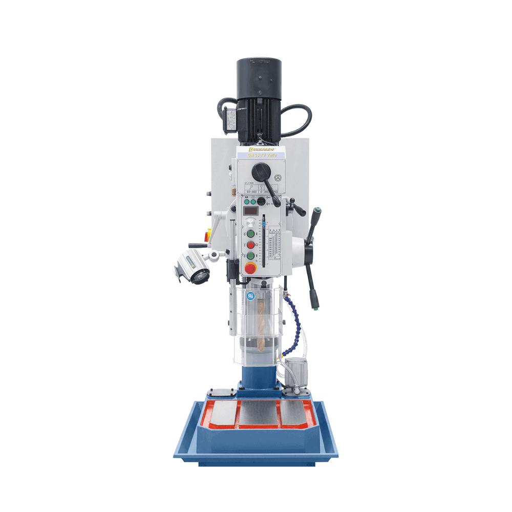 Il trapano a colonna Bernardo GB 35 TV Vario è una macchina robusta e precisa, progettata per lavorazioni professionali di foratura e filettatura fino a M24. La regolazione continua della velocità, con visualizzazione digitale, e la testa inclinabile da -45° a +45° offrono massima flessibilità nelle applicazioni.