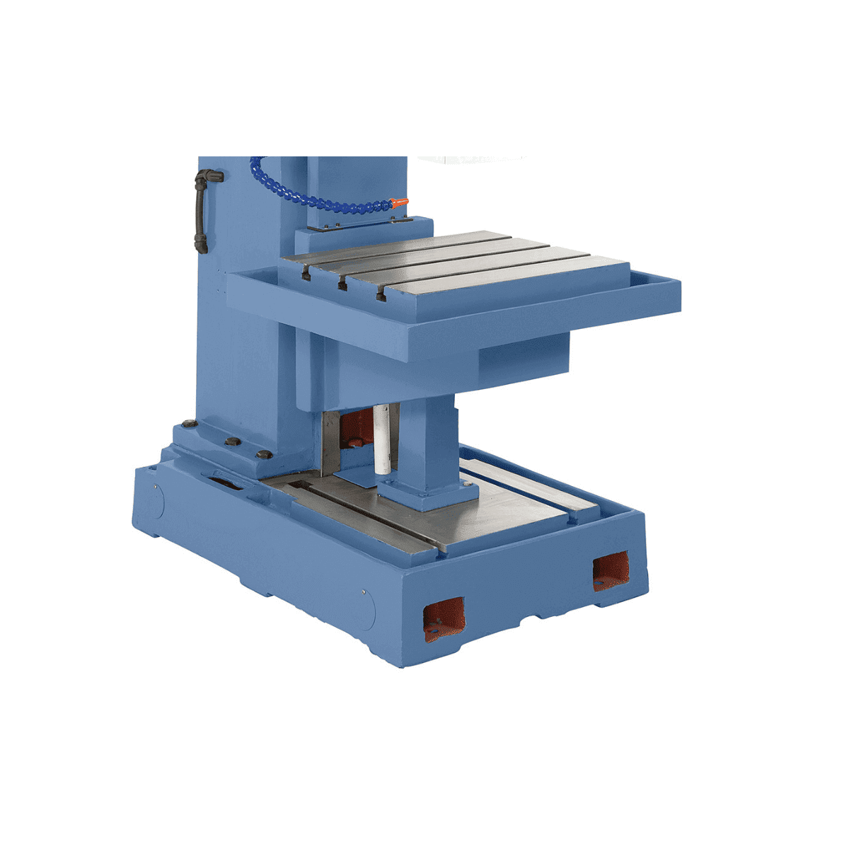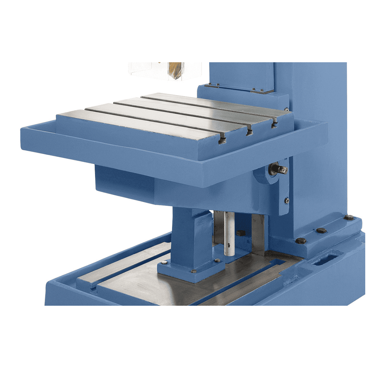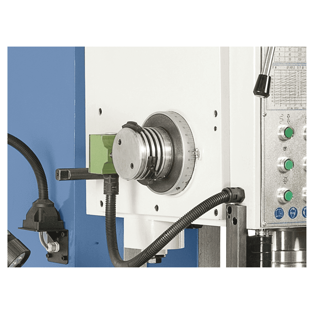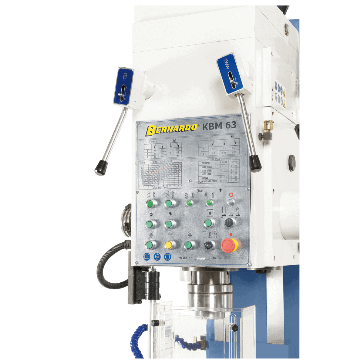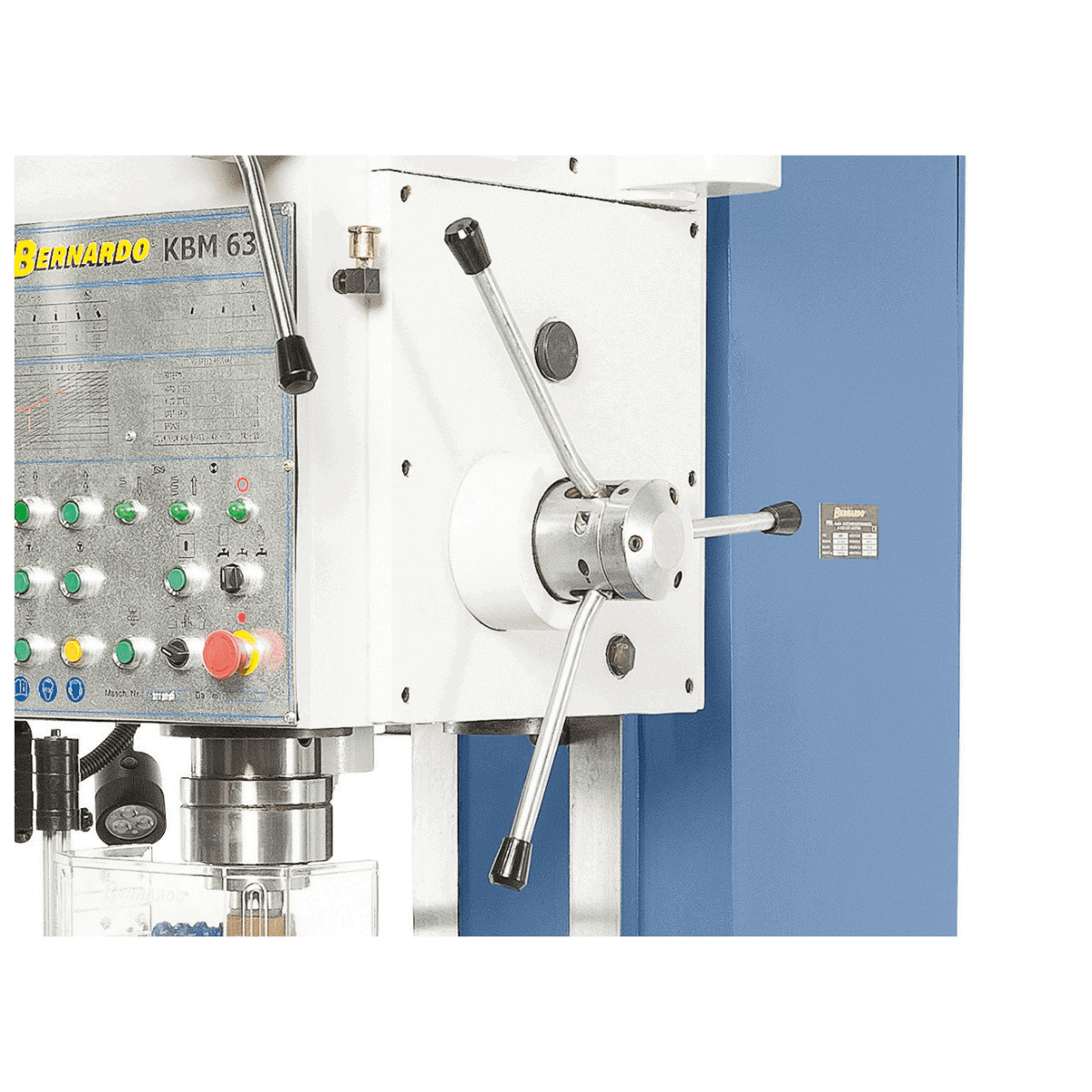 Il Bernardo Trapano a colonna fissa KBM 80 è progettato per lavorazioni industriali pesanti che richiedono massima precisione, forza e stabilità. La sua struttura in ghisa grigia massiccia, unita a una colonna robusta, garantisce elevata capacità di carico della tavola e lunga durata. Con capacità di foratura fino a 80 mm e filettatura fino a M56, è ideale per la meccanica pesante e per produzioni ad alto volume. Il motore da 5,5 kW sviluppa una coppia di 800 Nm e una forza di avanzamento fino a 30.000 N. L’avanzamento automatico del mandrino, il dispositivo di filettatura con inversione automatica e la guida a coda di rondine regolabile offrono affidabilità e fluidità d’uso. La dotazione standard comprende dispositivo di raffreddamento, lampada LED, protezione regolabile e utensili, rendendo il KBM 80 una macchina di riferimento nel settore industriale.