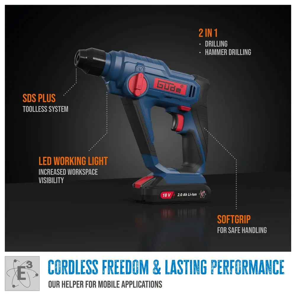 Martello perforatore a batteria Guede BH 18-0 – compatto SDS Plus